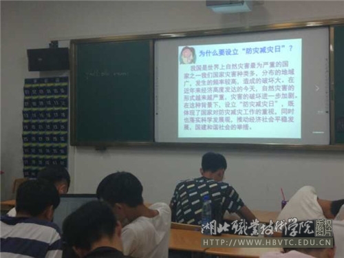 党的十九大报告明确提出要“树立安全发展理念,弘扬生命至上、安全第一的思想,健全公共安全体系,完善安全生产责任制,坚决遏制重特大安全事故,提升防灾减灾救灾能力”。因此在我国第十个全国防灾减灾日前后,全校师生开展了以“行动起来,减轻身边的灾害风险”为主题的防灾减灾主题班会。
