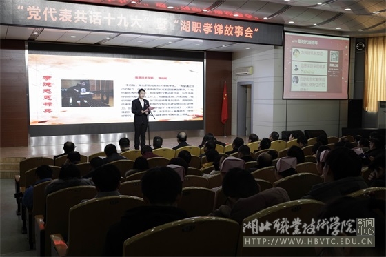 12月8日下午,学校2017年度“四季感恩”校园文化活动表彰大会暨“湖职孝悌故事会”在西校区文博馆学术报告厅顺利举行。我校优秀校友、党的十九大代表、广东省中山市公交集团党委副书记、纪委书记闫文静,孝感市委宣传部常务副部长李一三,学校党委书记蔡诗红、校长朱虹、副校长杨立明,市委宣传部理论科科长刘洪波,湖北省第十一次党代会代表许智教授,孝感市第六次党代会代表、湖北省师德先进个人杨运秀教授出席了此次活动,并为获奖代表颁奖。