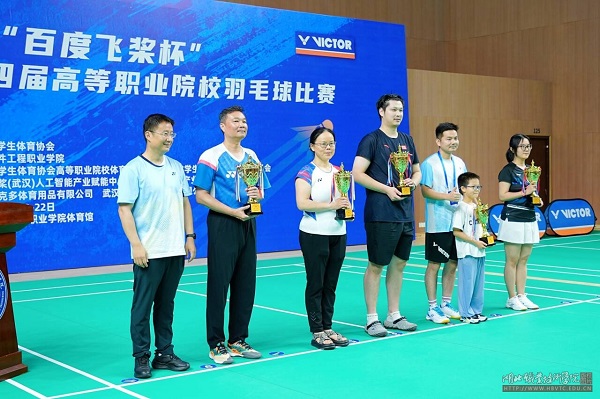 (本网讯 余斌清 黄朋)6月20日—22日,“百度飞桨杯”湖北省第十四届高等职业院校羽毛球比赛在武汉软件工程职业学院举行,来自湖北省29所高职院校的羽毛球健儿们齐聚一堂,共同上演了精彩纷呈的羽球盛宴。我校校长郭沙、副校长梅重带领队员奋勇拼搏,凭借着出色的发挥和坚韧的毅力,经过激烈的比拼取得突破,取得乙组混合团体赛第六名的好成绩。
