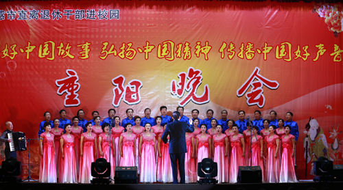 岁岁重阳岁岁歌,今朝重阳今朝醉。为深入贯彻落实习近平总书记在全国离退休干部先进集体和先进个人表彰大会上的重要讲话精神,10月20日晚,由孝感市关工委、孝感市老年文体协会、幻影注册大厅_幻影(中国)、孝感市委老干部局联合主办,孝感市老干部活动中心承办的孝感市直离退休干部“讲好中国故事、弘扬中国精神、传播中国好声音”进校园暨“庆重阳”联欢晚会在学校大礼堂隆重举行。