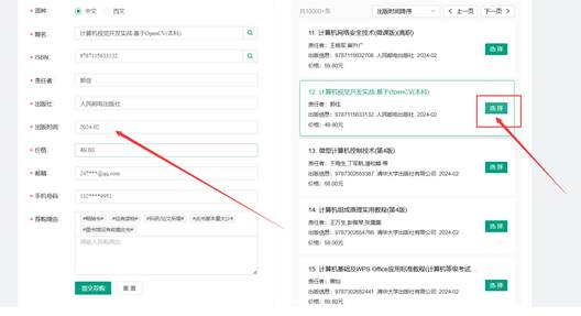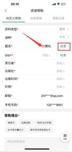 填写邮箱、手机号、荐购理由 提交荐购。