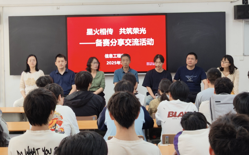 (本网讯马文豪)大赛点亮人生,技能成就梦想。为进一步激发学生参赛热情,助力学生技能成长,5月18日上午,信息工程学院举行了“星火相传共筑荣光——优秀校友备赛经验分享和交流活动”,邀请2022和2023年全国职业院校技能大赛二等奖获得者、2023届优秀毕业生杨新浩作备赛经验分享和交流。信息工程学院院长潘志安、副院长吴春花、备赛指导老师代表、2025年全体备赛学生及工作室学生代表等参加活动。