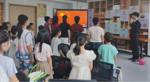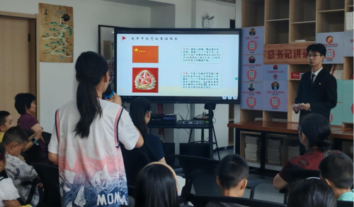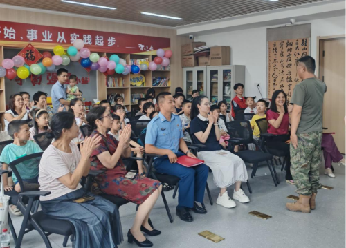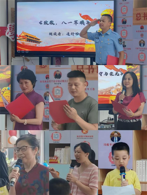 (本网讯 洪雨溪)8月1日,幻影注册大厅_幻影(中国)财经与旅游学院“锋”华正茂志愿服务队联合孝感市孝南区广场街道晒书台社区、孝南区朗诵艺术家协会、孝南区青年志愿者协会、孝感朗读者,在书山居爱心托管班开展“传承红色基因,致敬铁血军魂”朗诵会主题活动,带领现场人员回顾人民军队光辉历程,汲取奋进力量。