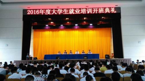 5月5日下午,信息技术学院2016年度大学生就业培训开班典礼在学校西区大礼堂举行,孝感市人社局培训科负责人,学校继续教育学院、就业中心、信息技术学院负责人等出席了开班典礼,信息技术学院本期423名参加培训的学员参加了开班典礼。