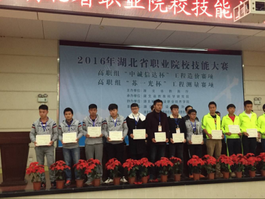 2016年11月18日至11月20日,由湖北省教育厅组织的2016年高职工程造价、工程测量技能大赛在湖北城市建设职业技术学院举行。我校建筑技术学院工程造价代表队(参赛学生:汪昕旭、兰涛、关文,指导教师:黄宏勇、陈卓、郭自灿)、工程测量代表队(参赛学生:张恒、肖杜、李宗源、张振,指导教师:付仁俊、张超、张敏华)两个赛项均获团体一等奖,黄宏勇等6位指导老师获得优秀指导教师奖。